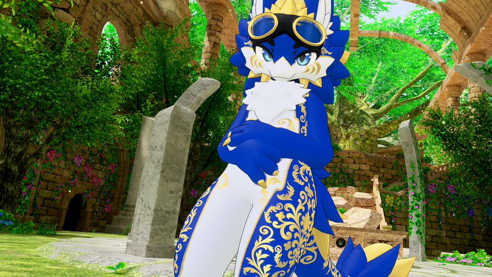 Shiny gold patterns all along the body & head, the furry embodiment of a Fabergé egg :D