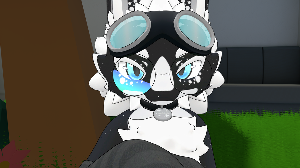 This model comes with the necessary blend shapes to work with expressions & face-tracking, and also a toggle to disable the grab-bone on the goggles so they don't clip into one-another